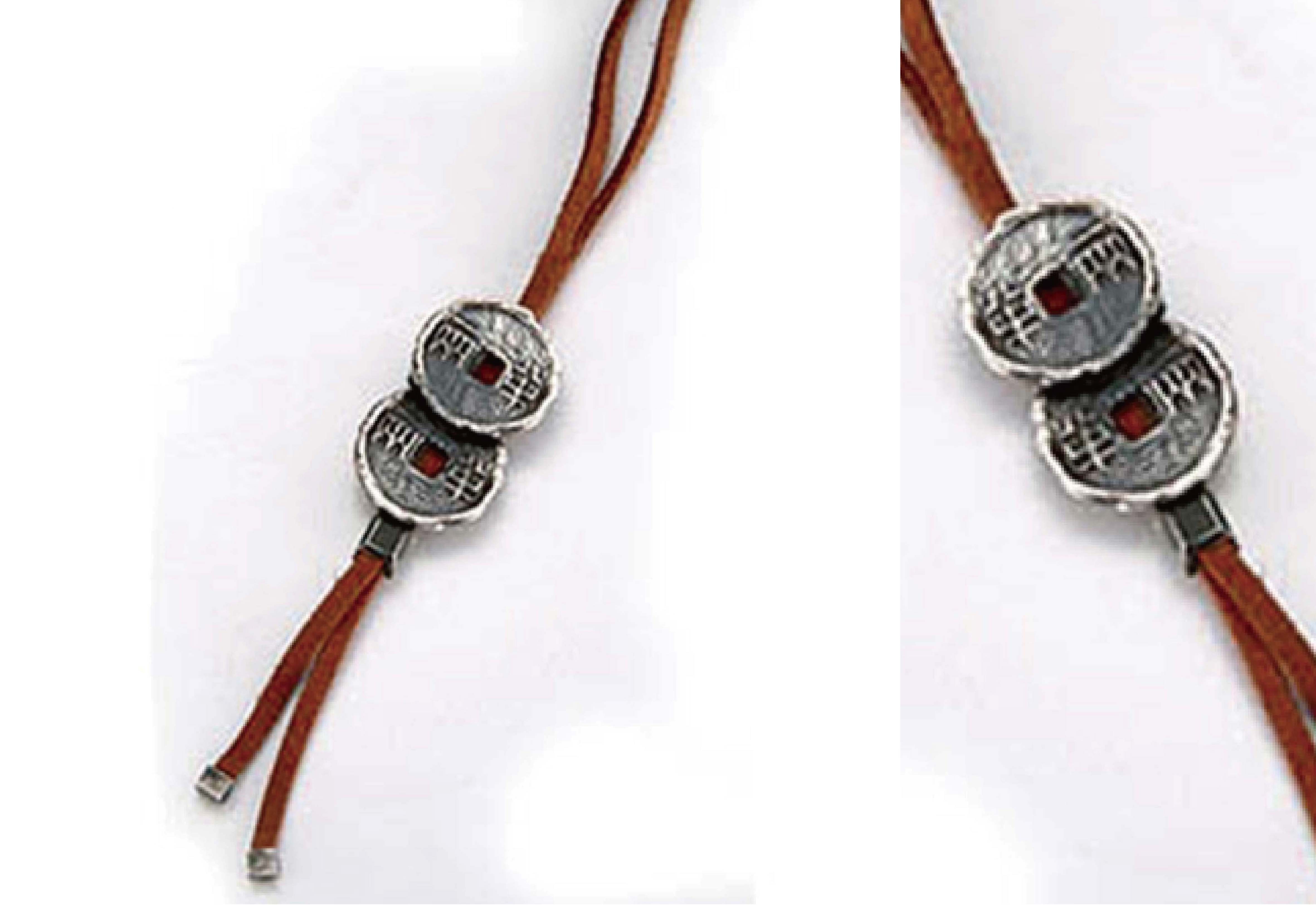 秦始皇統一中國後即制定幣制,此半兩錢範便為鑄幣工具之一。使用者於佩帶項鍊或手鍊之際,彷如享有隨身攜帶鑄幣機的獨特感受,既有趣又新奇。