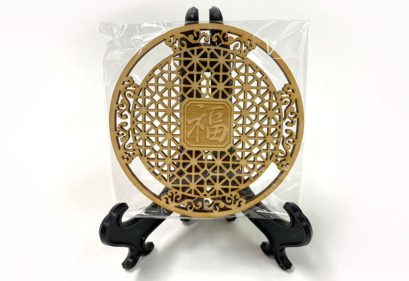 將漢文化傳統窗櫺與吉祥元素以雷射工藝精雕而成,採用未上漆未添加的天然原木,散發原木清香,紋路與色澤獨一無二