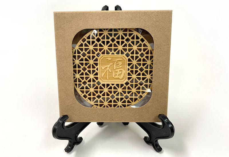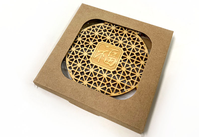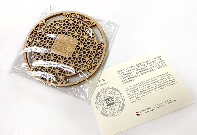 吉祥雕刻杯墊-和風 木質杯墊 Coaster