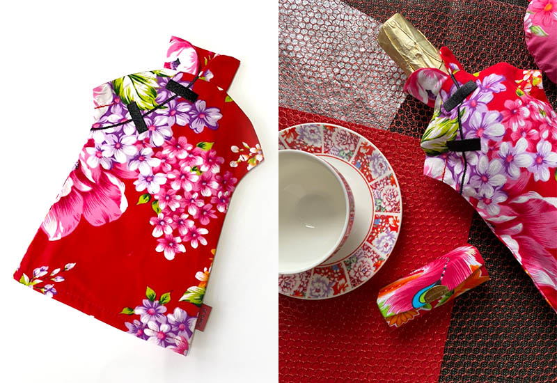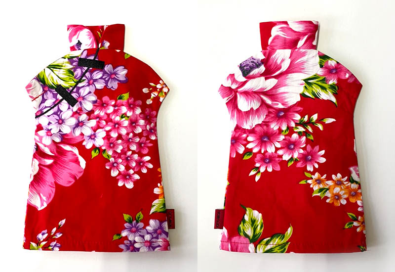 台灣花布 花布酒瓶衣-大紅色 酒衫酒衣酒套 杯套 送禮包裝 bottle clothes 客家花布 客家文化 Hakka culture
