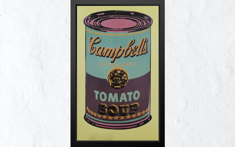 安迪·沃荷認為藝術與金錢掛勾,因此應該要努力把藝術商業化。他的著名作品中,有一幅不斷複製家傳戶曉的金寶湯圖案,就表現了資本主義生產方式的新一階段。他經常使用絹印版畫技法來重現圖像。他的作品中最常出現的是名人以及人們熟悉的事物,比如瑪麗蓮·夢露和埃爾維斯·普雷斯利。重複亦是其作品的一大特色。(來源:維基)