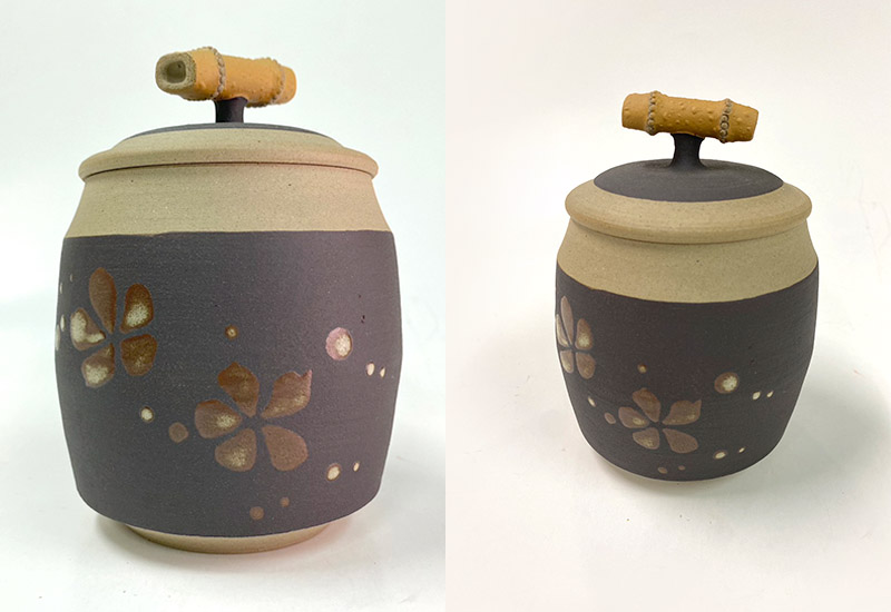 結合客家傳統元素桐花,用手捏出質樸、逼真且自然的竹子紋理