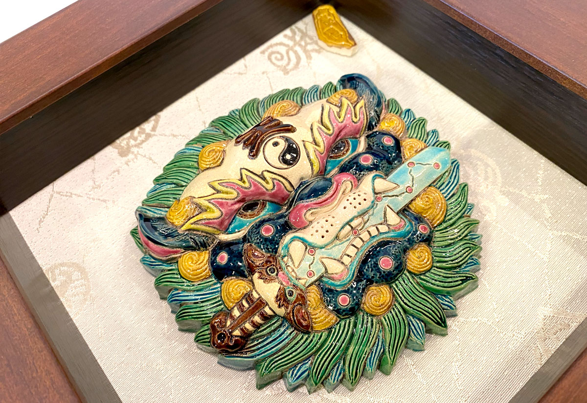 呂世仁 醒獅(框) 交趾陶 掛畫 台灣特色工藝品 Lion Cochin pottery