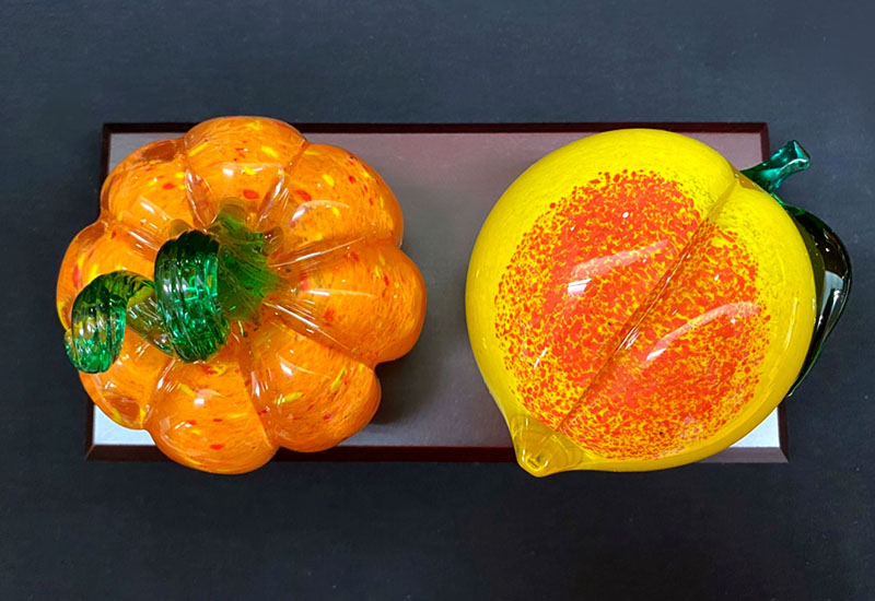 台灣琉璃工藝 台灣琉璃藝術 流離 瑠璃 瑠瓈 台灣琉璃藝術 台灣玻璃工藝 玻璃工藝設計 居家 裝飾 布置 擺設 水果造型 南瓜 金瓜 桃子 造形 造型玻璃