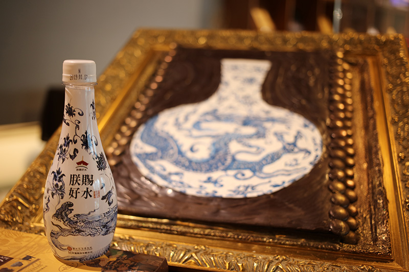 利用瓶身及瓶標將國立故宮博物院典藏品『明 永樂 青花龍紋天球瓶』應用其設計上,在設計其圖騰構圖大小、文字、顏色配置巧妙襯托水的純淨,並保有其美觀時尚又賦文化意涵,在享用的同時也能欣賞文物的新形態的表現,借此宣傳此文物,飲完後,也能珍藏或當花瓶使用,為家中增添新風貌。