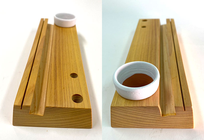 ★心持木取材自木材的年輪中心斷面,是木材最精華的部分,油脂含量高,能讓檜木的香味精華直接由維管束釋放。滑落的水滴更可以幫助檜木的香味散發,若是熱水或熱飲溫度為更能刺激檜木油脂的揮發。