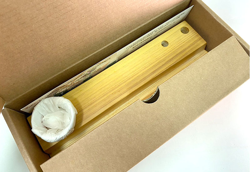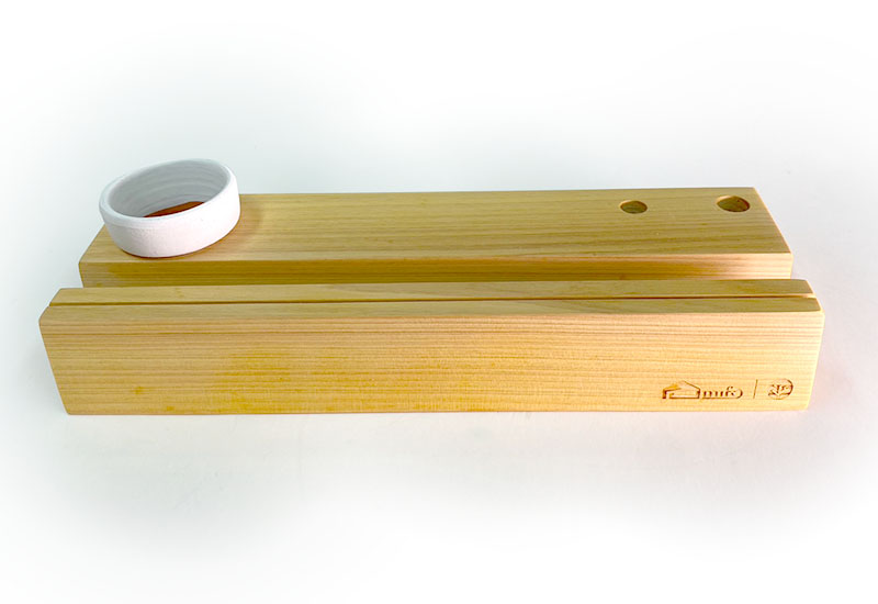 日本檜木數十年吸收自然菁華,為保留檜的心,由『一郎木創』工房老師傅,專注三十年經驗所製作『心持木』,過程中樹心年輪應力釋放會導致纖維自然龜裂,篩選下來的每一顆健康的樹心,師傅們用日本檜木磨粉調合乳膠來為這些自然龜裂作修補,留下道美麗的『心之痕』,這才是真正的『心持木』。