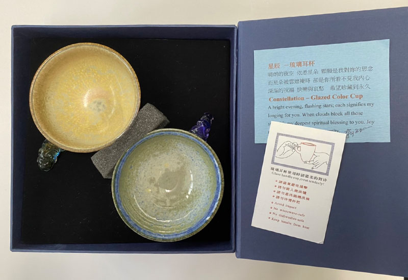 存仁堂 星辰琉璃耳對杯 台灣MIT認證 台灣陶瓷琉璃 婚禮喜事 情人對杯 pair tea cups 李存仁 汪弘玉 作品 對杯組 情人對杯組 臺灣茶具組 杯壺茶具 泡茶組 茶文化 結婚送禮 婚禮紀念品 情侶對杯 新居賀喜