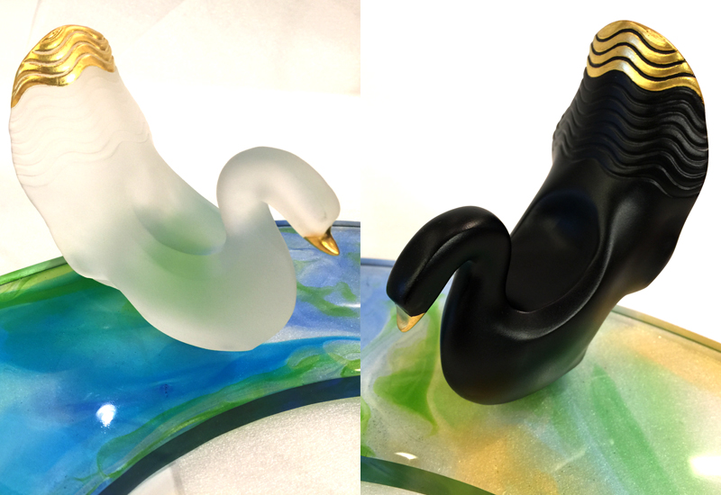 林一雄琉璃 幸福一對(套) 天鵝比翼琉璃雕塑 婚禮祝福 美術藝術品 sculpture