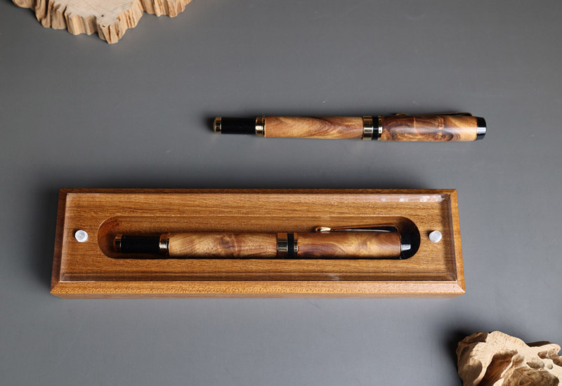 台灣梢楠木材為台灣國寶材,木材紋理華麗高尚,製作高級筆材,更能顯現鋼筆的珍藏價值。