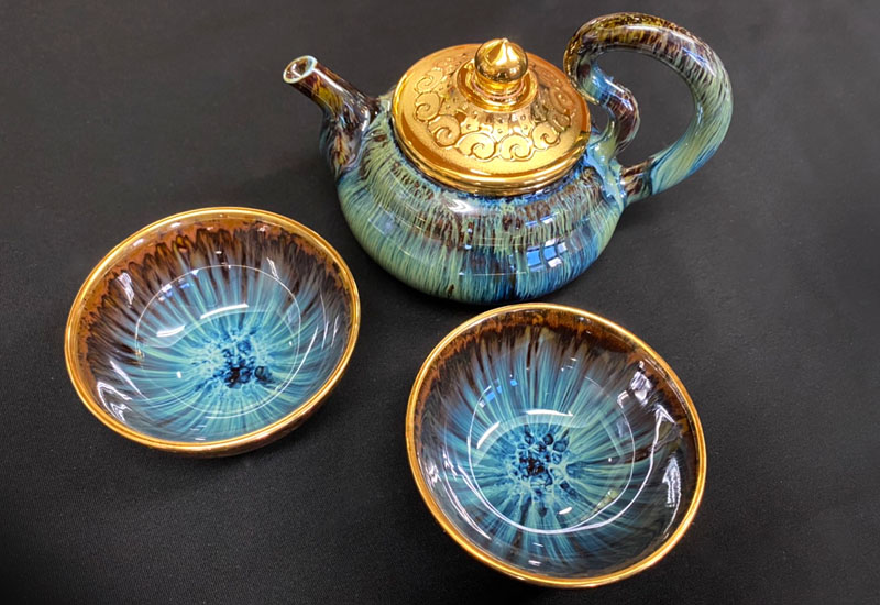 大立窯 鎏金海神之眼玄機麗人壺組(1壺2杯) 微笑台灣MIT認證 Yii認證 結晶釉 天目釉茶杯 teacup
