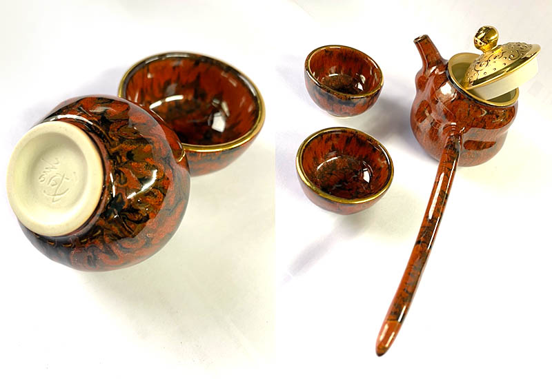 大立窯 鎏金行雲流水壺組(1壺2杯) Yii認證 結晶釉 天目釉茶杯 teacup天目茶碗
