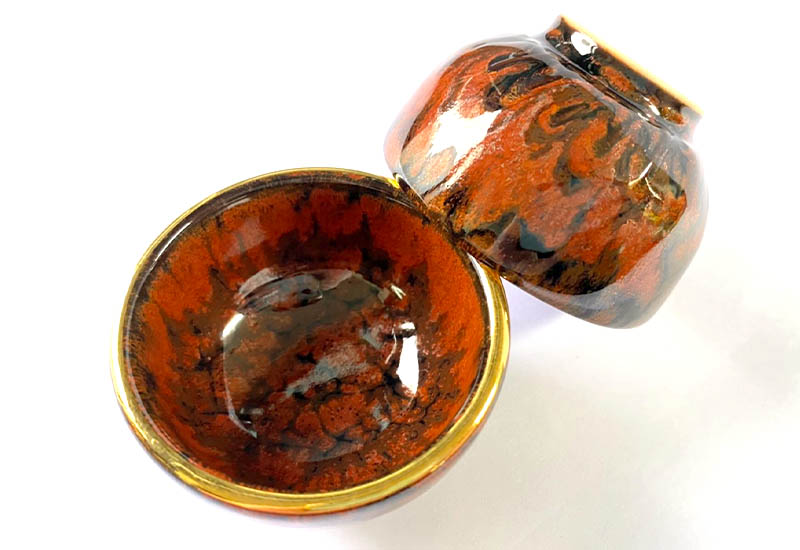 變,生成油滴紋,紅釉黑斑形成美麗圖騰。