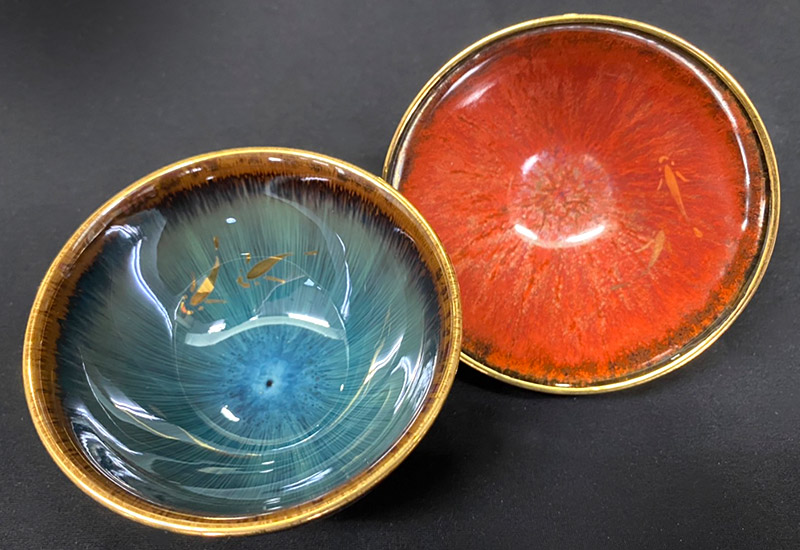 大立窯 玲瓏戲金典藏版對杯 結晶釉 鶯歌燒 天目釉茶杯 pair tea cups天目茶碗