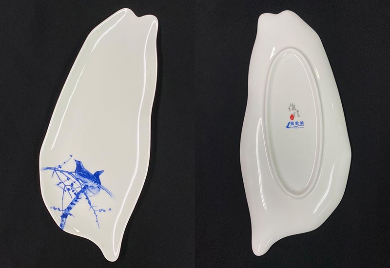 台灣造型的瓷盤飾以台灣國鳥"藍鵲",極具台灣代表性。