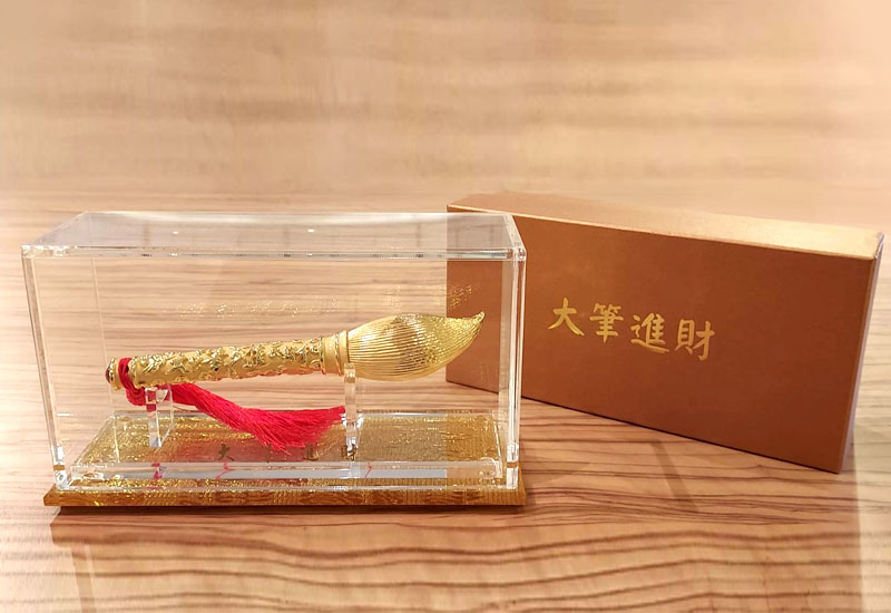 盛恩 大筆進財毛筆擺飾 布置擺設 恭賀祝賀 祝福 招財進寶 開運 吉祥 福氣 大器 金屬製品 金光閃閃 Sun World Writing brush Ornaments Luckygift Bring in wealth and treasure Auspicious Blessing Metal products
