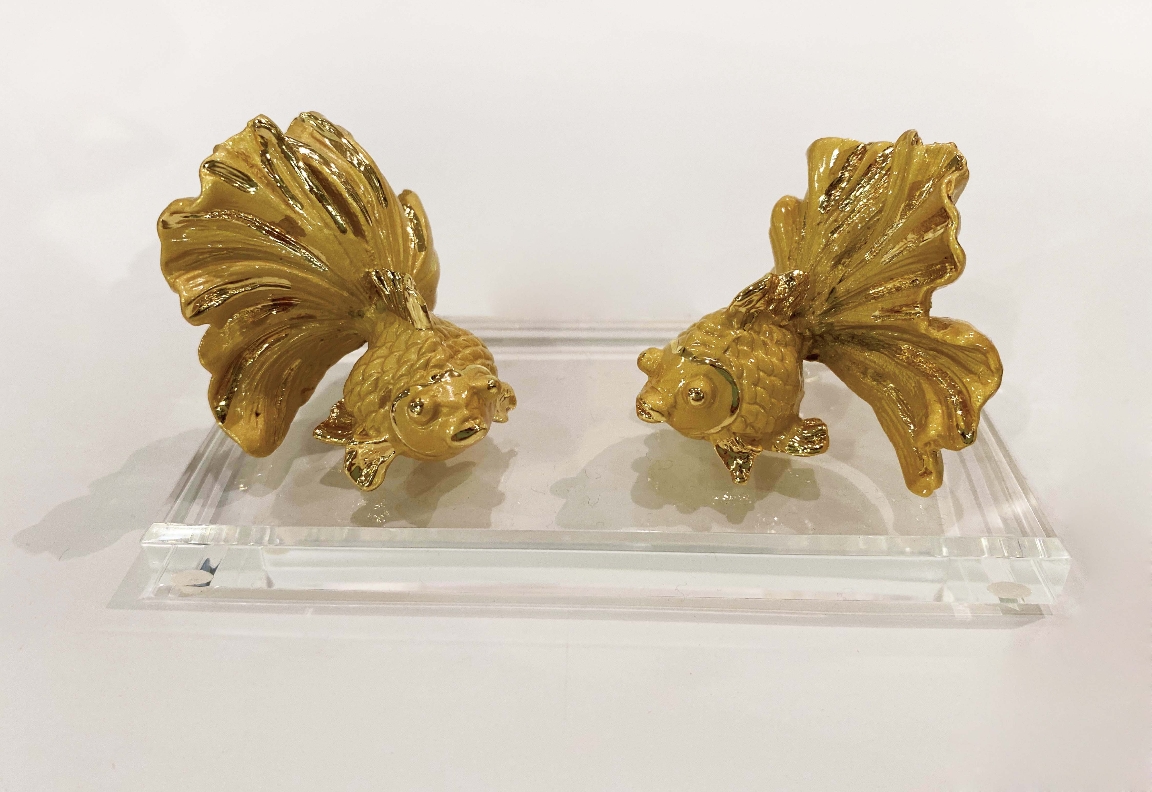 盛恩 富貴有餘雙金魚擺飾 年年有餘 布置擺設 恭賀祝賀 祝福 招財進寶 開運 吉祥 福氣 大器 金屬製品 金光閃閃 Sun World Goldfish Ornaments Luckygift Bring in wealth and treasure Auspicious Blessing Metal products