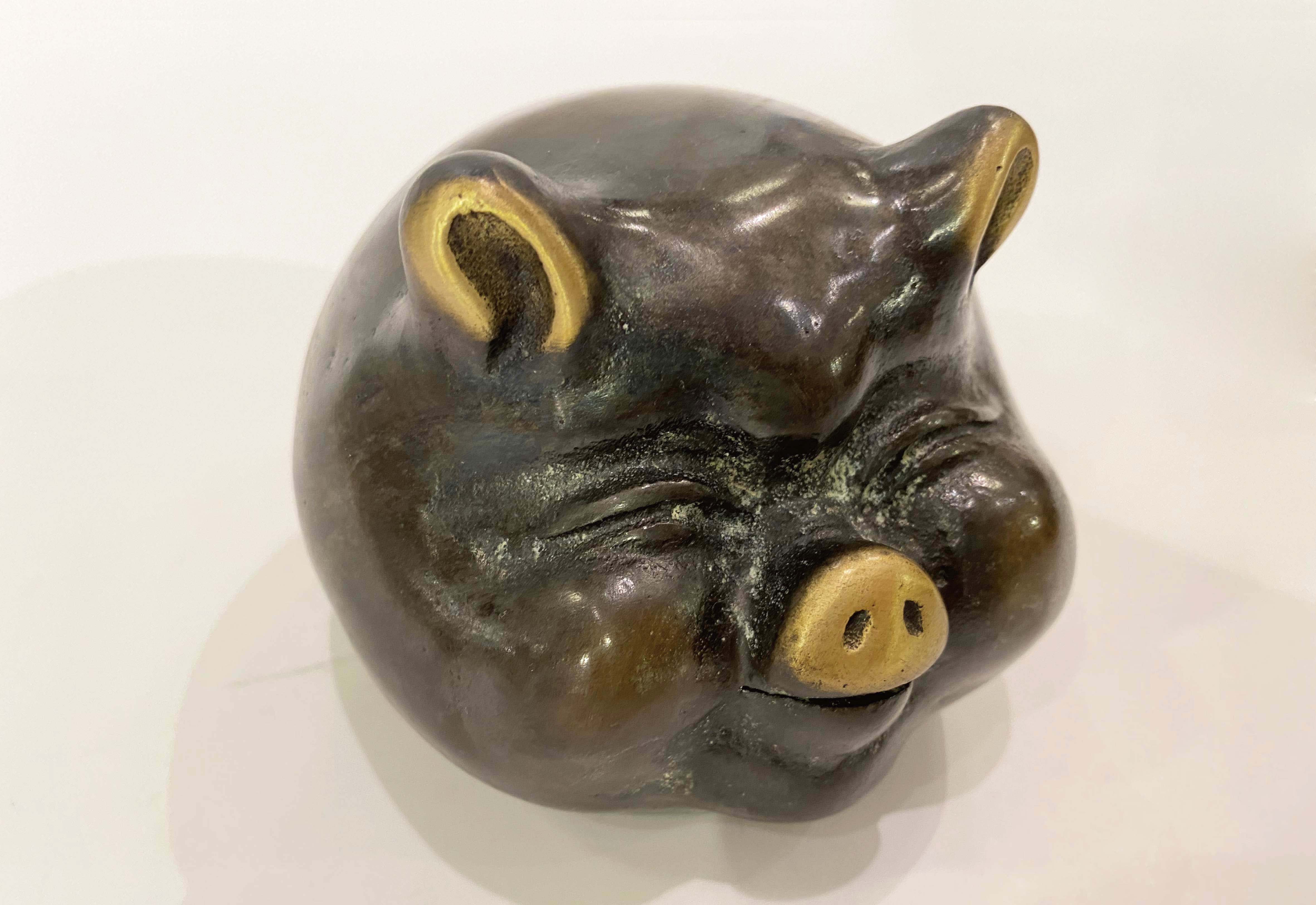 禾櫸 中圓豬青銅雕塑 青銅工藝品 動物青銅雕塑 雕像 十二生肖 布置擺設 恭賀祝賀 祝福 招財進寶 開運 吉祥 福氣 大器 金屬製品 He Zech Pig Bronze Sculpture Ornaments Luckygift Auspicious Blessing Metal products