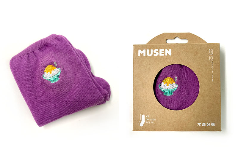 台灣,美食的寶島。從北到南、從都市到鄉間、從夜市到餐廳,數不盡的美味不僅吸引外國朋友,也深深的抓住台灣人的味蕾。常常聽到在其他國家旅行的朋友懷念台灣的美食,也常聽到國外的朋友為了某個美味一再的造訪台灣,在台灣一定有個屬於您的美妙滋味,那麼現在我們就讓這美味的回憶陪伴您吧!我們精挑細選台灣的美味,不斷的修正來回測試刺繡的效果,用最簡潔可愛的方式把美味放在您的襪子上,希望您看到它都能想起您心中的那個美味。