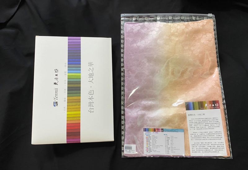 本系列為「絕配~對比與共好」,旨在探討臺灣既活潑又溫柔的對比美學。傳統染料色彩源自陽光與大地,本系列應用:大葉欖仁落葉、蟲癭中藥五倍子、仙人掌的寄生胭脂蟲、藤蔓植物茜草根等優秀染料;布料採用純天然蠶絲提花布,質感細緻華美,配色謙和含蓄,充分展現臺灣色的優雅氣質。