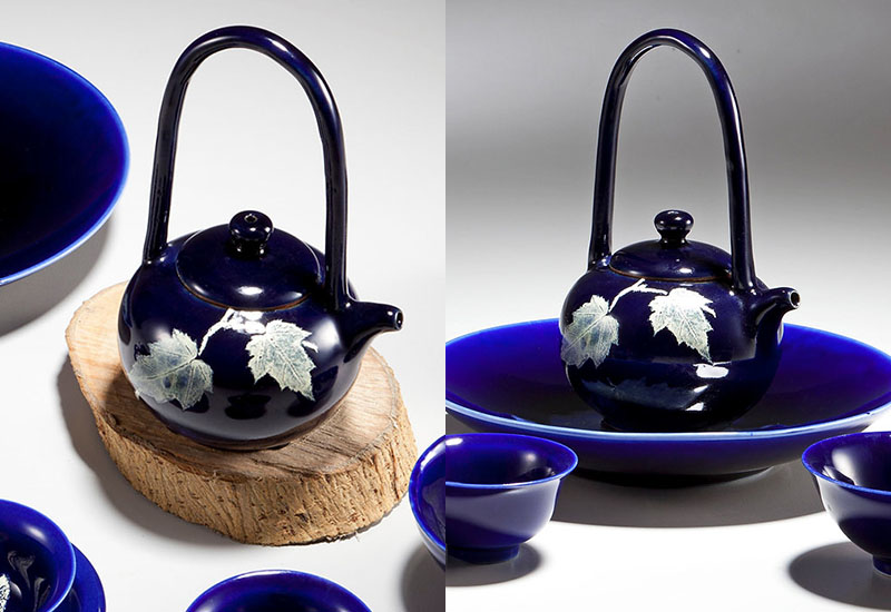 林映汝 木葉藍晶采風提壺茶具組 杯壺茶具 鶯歌燒 陶喜 teacups set