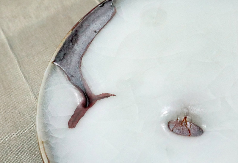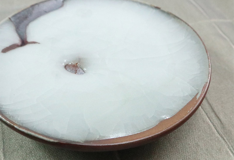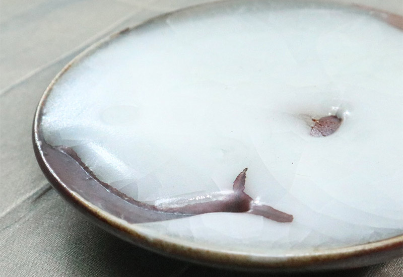 柴燒白玉小盤以經典柴燒為小盤基底,盤底有著如月般的柴燒質感,