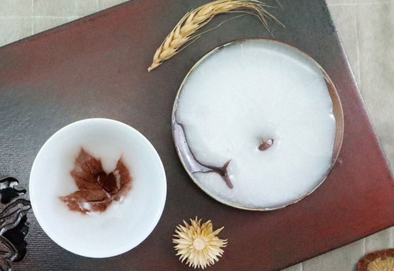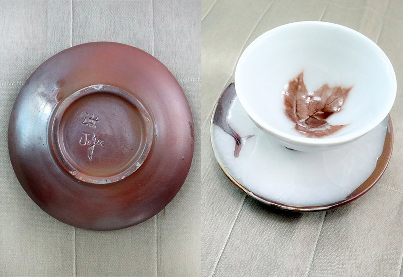 獨具匠心的陶藝創作、以慢工出細活的思維理念生產孕育每一件創作、作品品質高而優雅具自己獨有的藝術風格、釉面晶瑩剔透、真實葉脈栩栩如生而(不失)光滑細緻、可說一支獨秀、件件有如珍石寶玉。