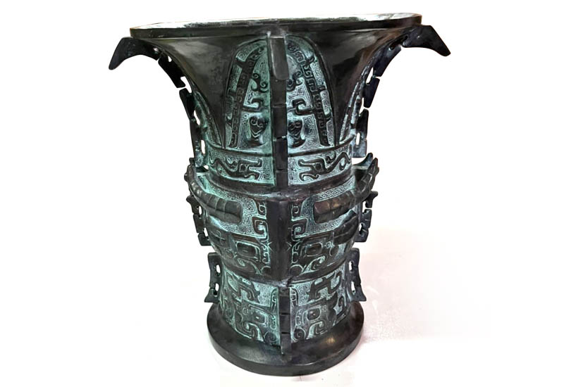 祥瀧 何尊青銅器-中(仿) 故宮文物典藏 中國青銅器時代 古文明 擺飾 美術藝術品 青銅雕塑 金屬雕塑 china bronze zigzag thunder pattern Chinese ritual bronzes Chinese Bronze Age