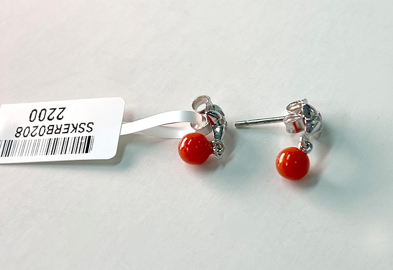 尺寸:1.8×0.4×1.5 cm、均0.6g 材質:珊瑚、銀鍍K台、水鑽