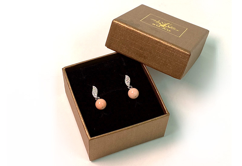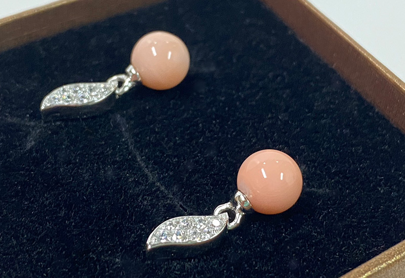 粉珊瑚圓珠垂墜造型,高貴典雅。是幸福、吉祥、圓滿、永恆的象徵。