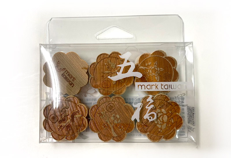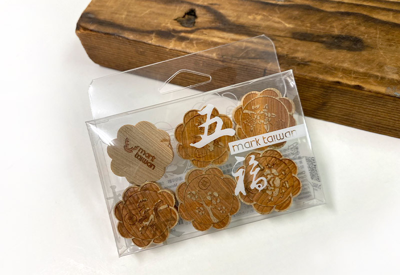散發檜木清香,五福字配上五種花卉植物,分別代表著不同含意,為收禮者獻上滿滿祝福!