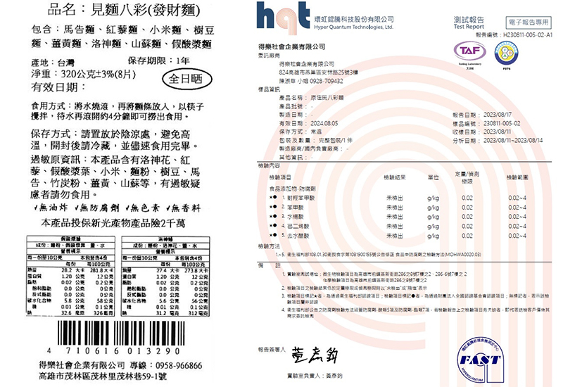 成份:馬告麵、紅藜麵、小米麵、樹豆麵、薑黃麵、洛神麵、山蘇麵、假酸漿麵