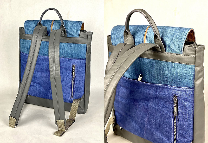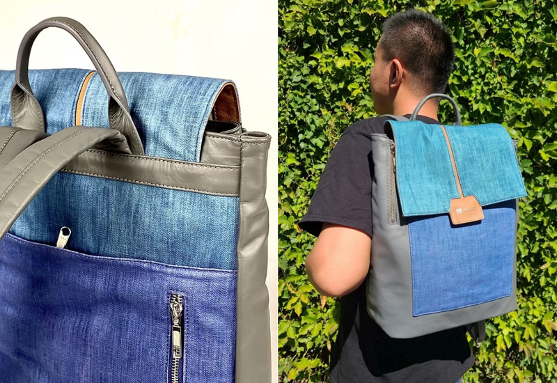 本設計使用天然染色的棉布和淺灰色牛皮結合而成的中型後揹包。因設計時強調優美的線條、高雅的配色、細膩的質感與年輕的使用訴求,希望它的美感與機能並重,以吸引年輕的使用者能喜愛友善環境的天然染色產品,擴大天然染色的影響力。