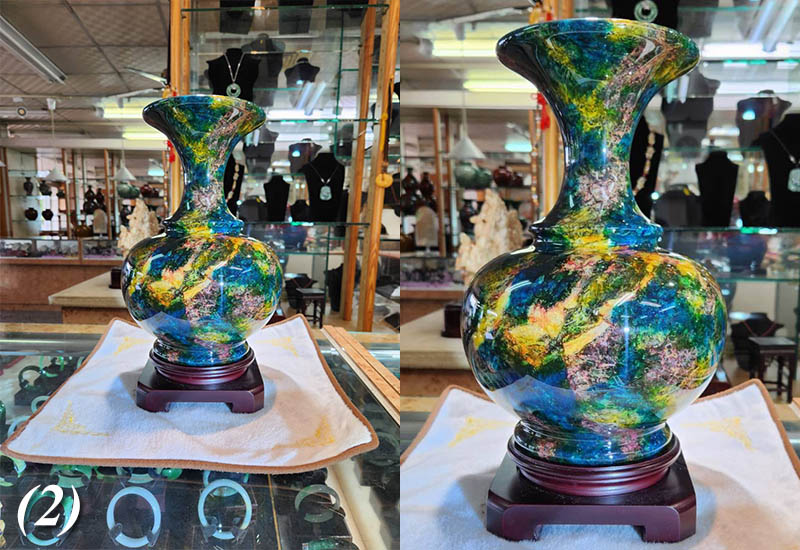 七彩玉石花瓶高座 台灣玉 花器 vase