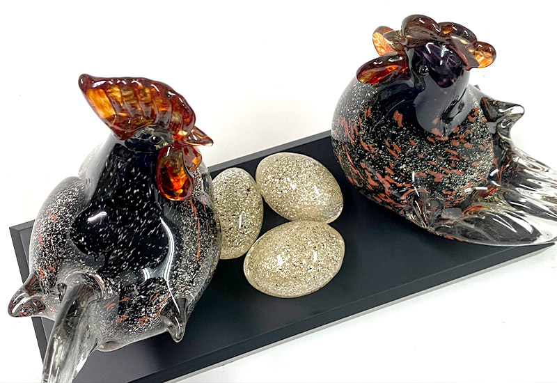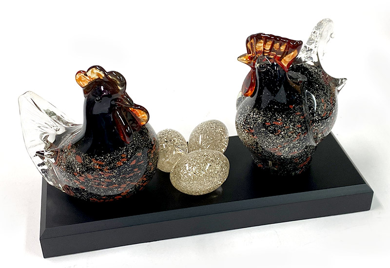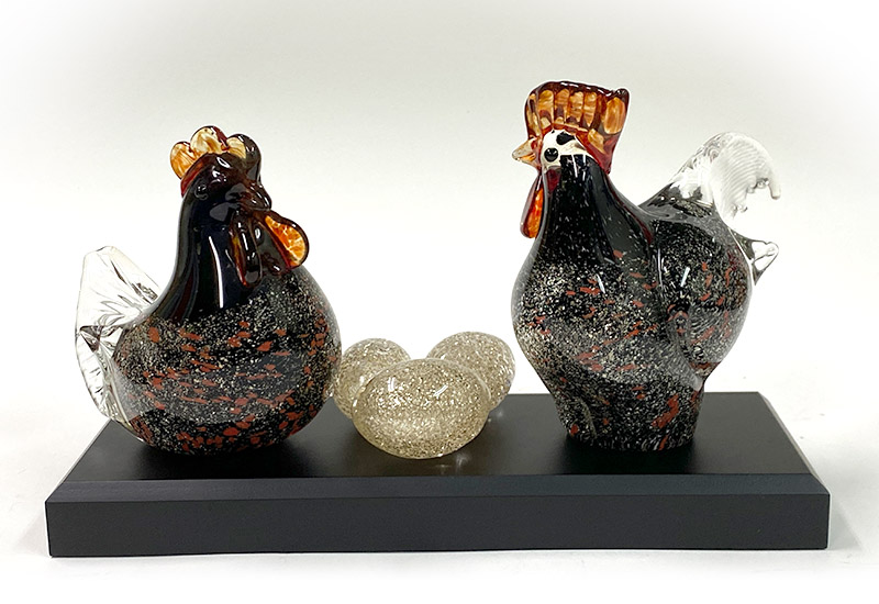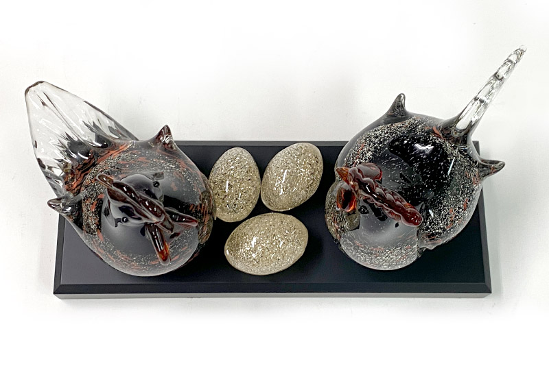 春池玻璃 公母雞+蛋組(黑紅組) 金雞報喜 公雞母雞加蛋 含雞蛋 一家平安 精裝盒