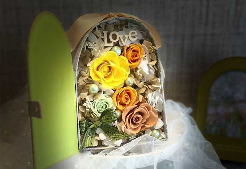 幸福時光花藝設計 森日微光 永生花禮盒 黃色綠色玫瑰永生花 繡球花 乾燥花花藝藝術設計 捧花花束花禮盒 祝福祝賀送花送禮 rose hydrangeas Preserved Flowers Floral Design Flower art Blooming Flowers Weaving Preserved Flowers flowergiftbox dried flower crafts diy ドライフラワー