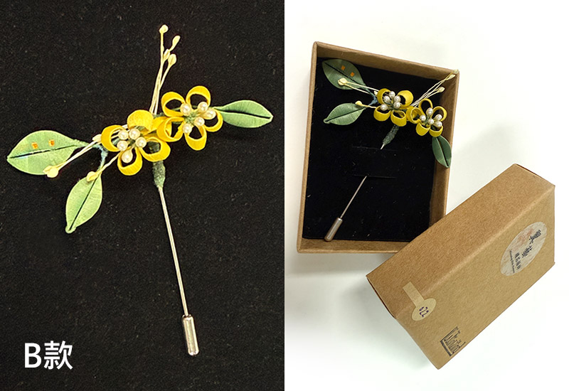 尺寸:領針:約8.4*7.6*2 cm,髮夾:約7*3*1.8 cm 材質:5X8X3cm 繡線、金屬