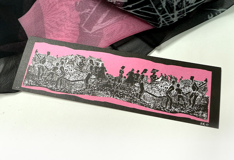呦呦 楊英風 青果市場絲巾(粉)  台灣美術藝術 雕塑插畫 台灣製 送禮 居家用品