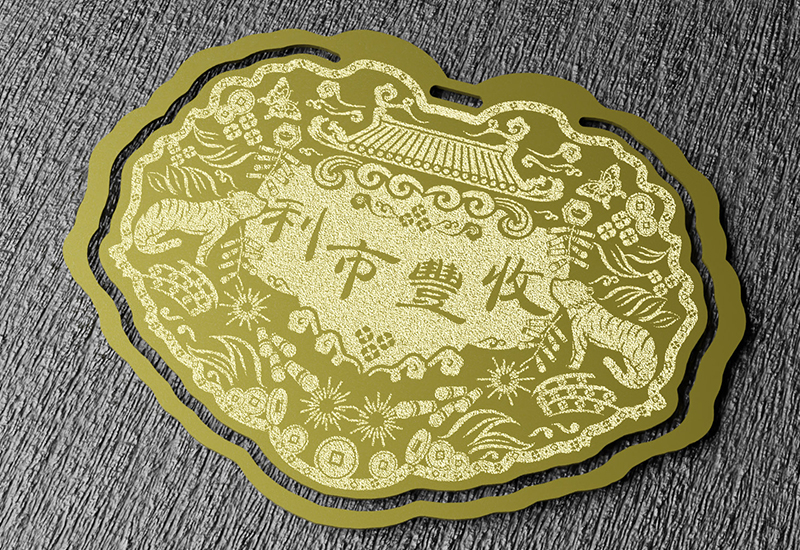 將神明金牌轉化為實用性文創商品,意謂福氣到來,不管是工作、事業、生意、功名或身體健康,都為您加油打氣護佑賜福,商品作為書籤使用,賦予精製感,也兼具實用性質。產品以銅片蝕刻製成,利用半蝕刻、半簍空的技法,讓平面的金屬書籤完整呈線圖像的深淺視覺感。
