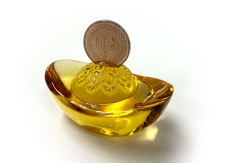 以傳統元寶為形,透過手工玻璃塑形,將「財富、圓滿、好運」凝聚成一錠溫潤光亮的祝福。