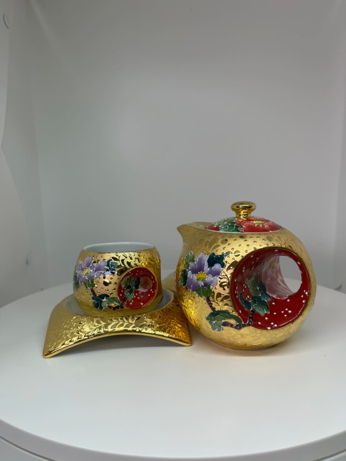 法華彩 鎏金圓緣茶壺組(1壼2杯2杯托禮盒組)