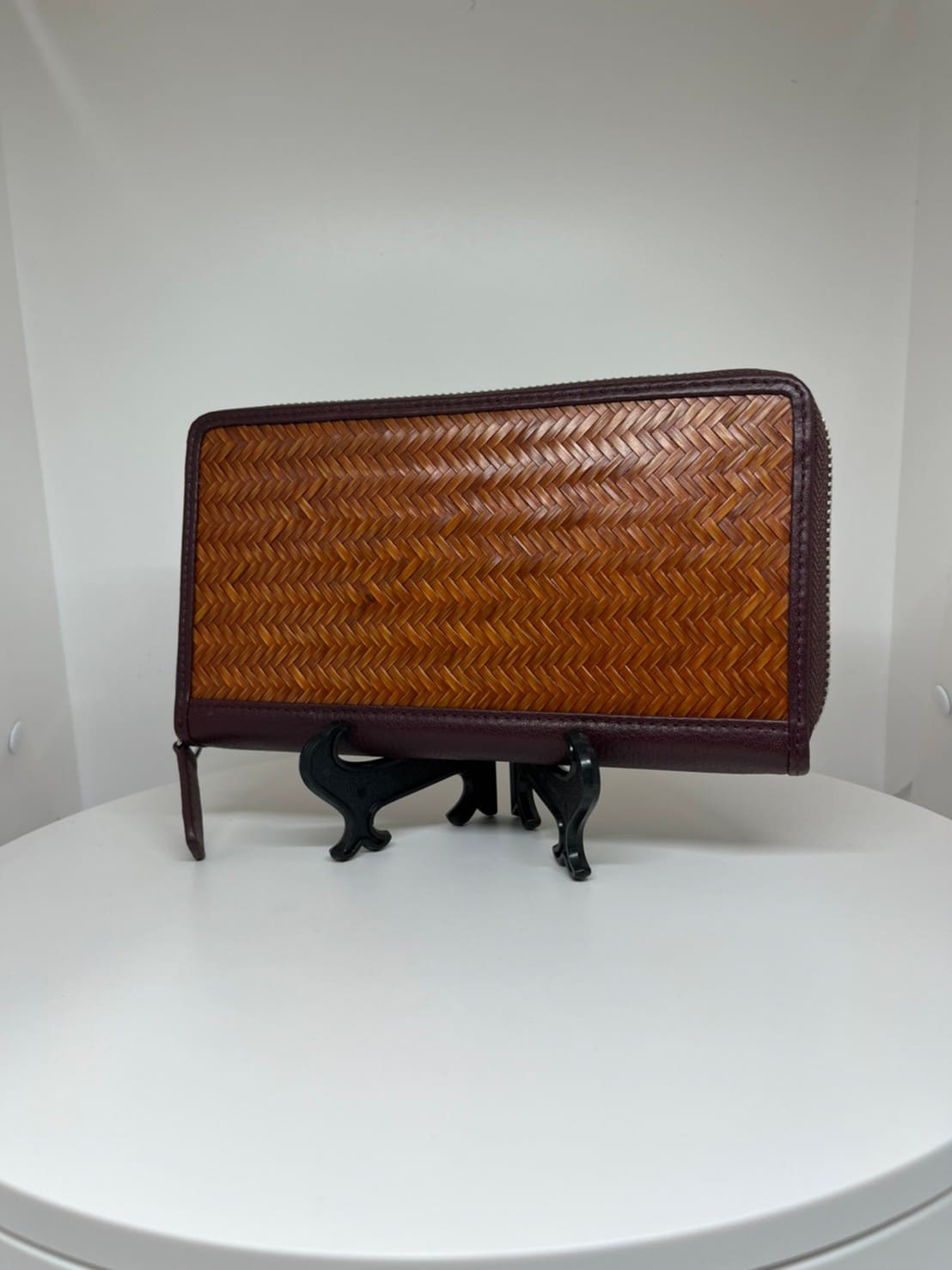 竹編斜紋長皮夾