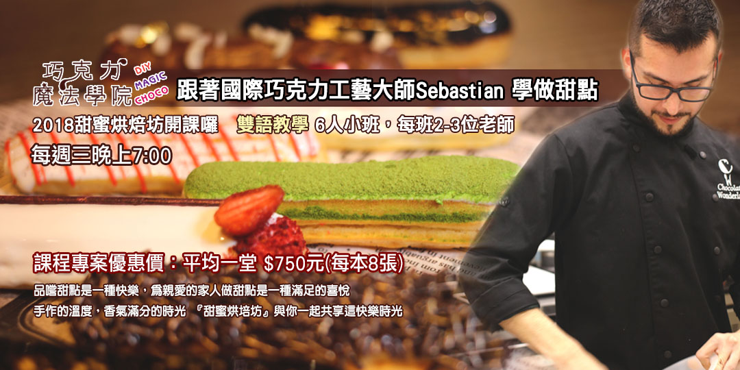 Y國際巧克力金工大師Sebastian老師,現任:巧克力夢公園巧克力國際工藝師。擅長:巧克力工藝作品、巧克力的基本和專業的處理。